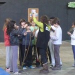 Primer, fer els 4 grups. Cada un dels grups es barrejava amb els de l’escola Tres Pins. Al final: 4 grups per a 4 espais d’activitat.