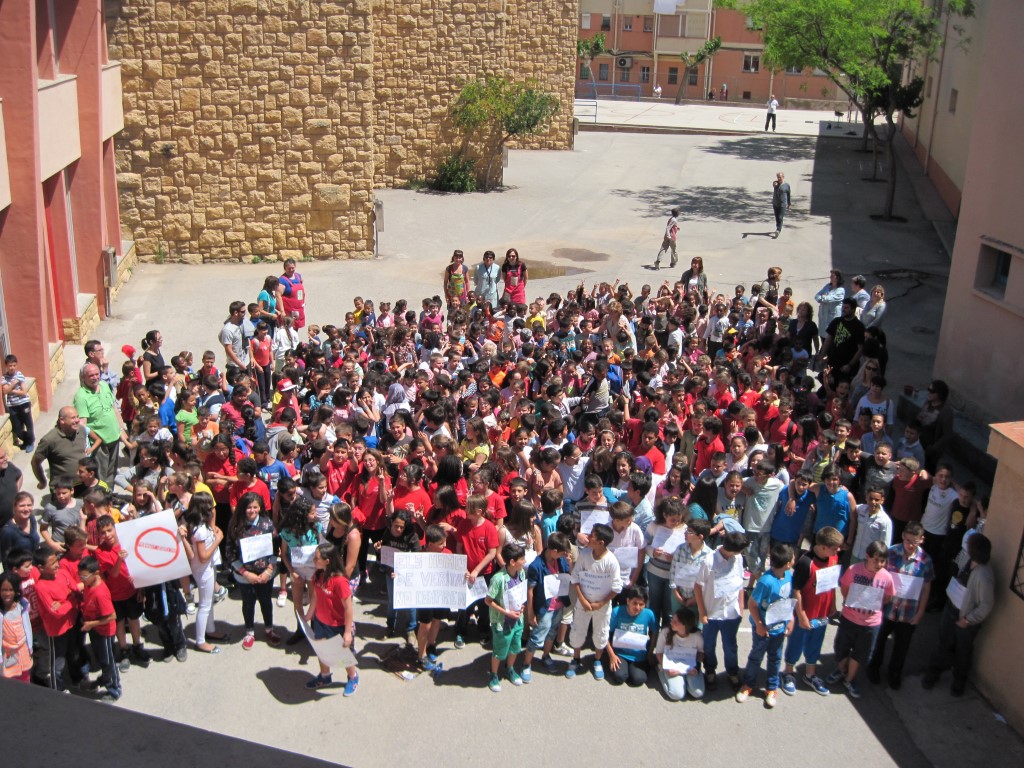 Finalment, com a la resta d’escoles de Catalunya, es va fer una concentració de cinc minuts, a l’hora del pati, amb l’eslògan Bring back our girls.