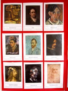 I, en paral·lel, a la planta de Pediatria, on tenim l’Escola, els alumnes nous d’aquest curs també han començat a fer els seus autoretrats. Molt ben acompanyats, això sí, d’artistes reconeguts al llarg de la història: Picasso, Goya, Leonardo, Frida K,… que també es van fer els seu “Selfies”.