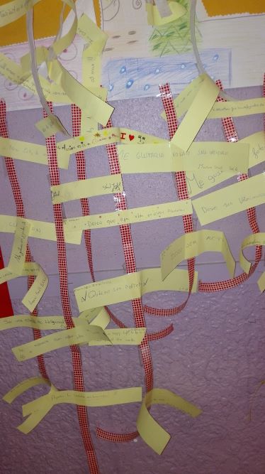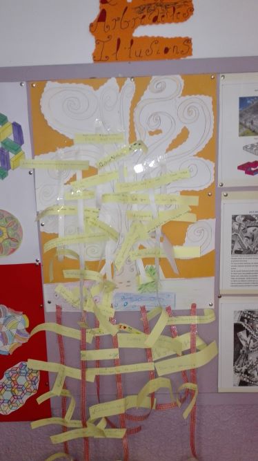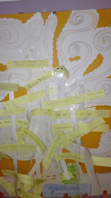 Una de les primeres activitats per treballar el bullyng a l’aula és l’Arbre de les Il·lusions. On els meus alumnes van reflectir els seus sentiments, els seus destijos des d’una basant positiva. Les fotografíes que he inserit és del treball final dels alumnes. Cadascú va llegir la frase que havia escrit davant de la clase sobre els desitjos.