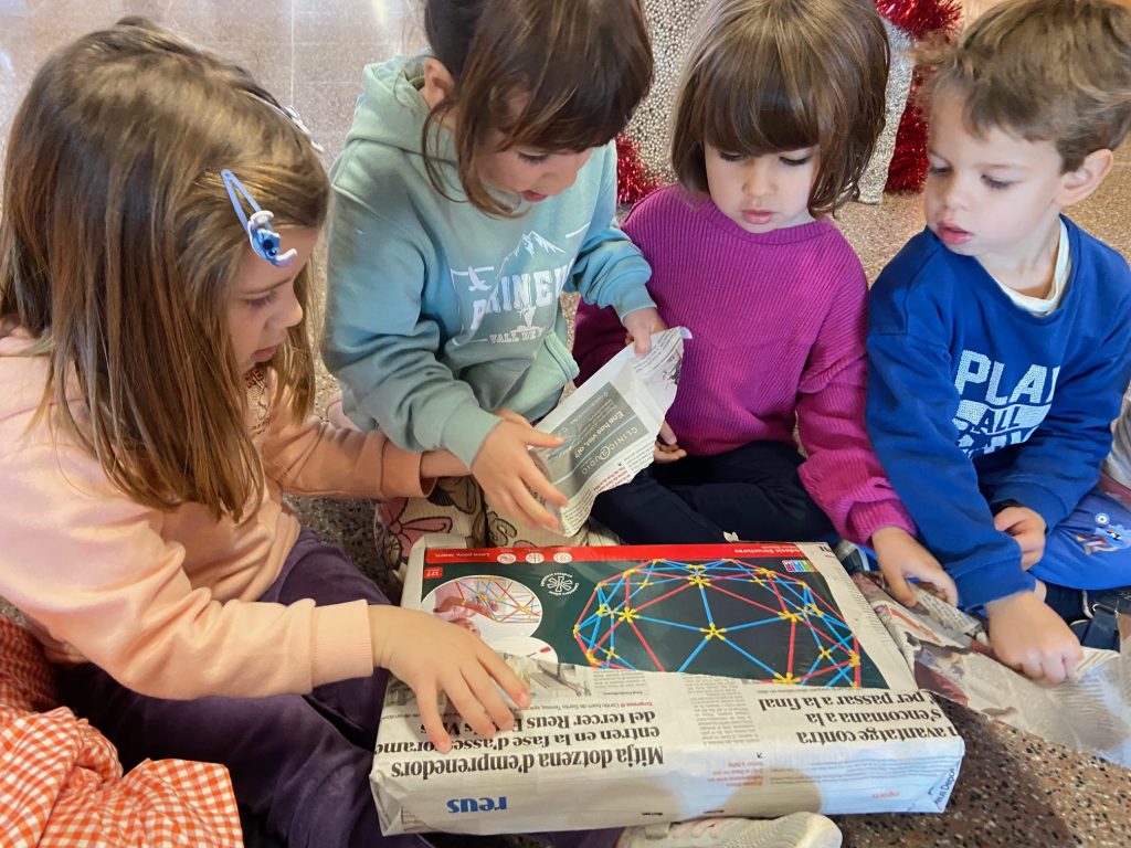 A I3 un joc per descaragolar, a I4 construccions d’imants i estructures. Pels alumnes d’I5 van arribar unes pissarres per apendre a fer la lletra lligada.