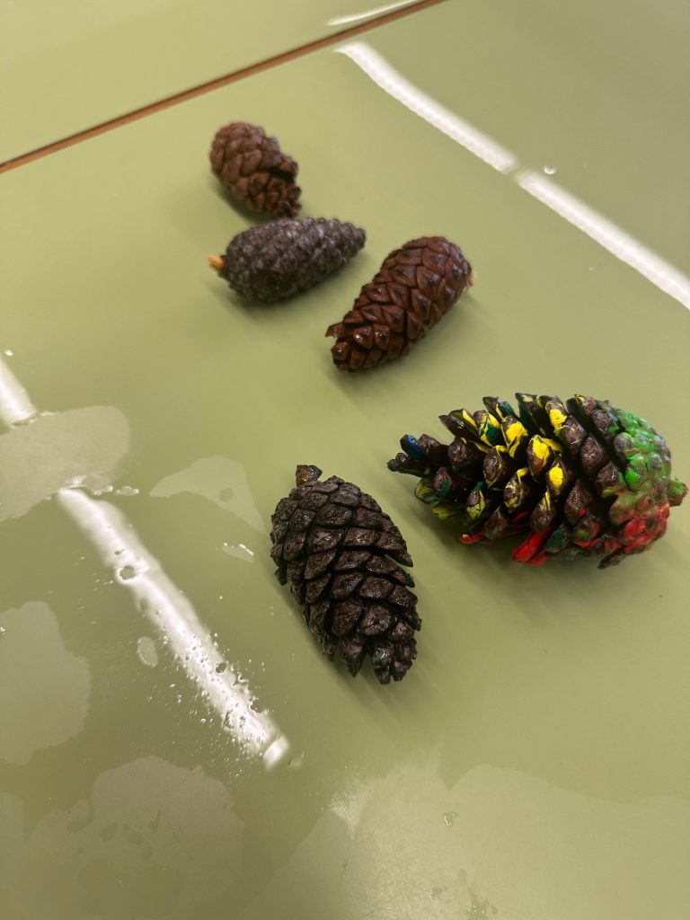 Els alumnes d’educació infantil van fer un experiment de la tardor amb unes pinyes.