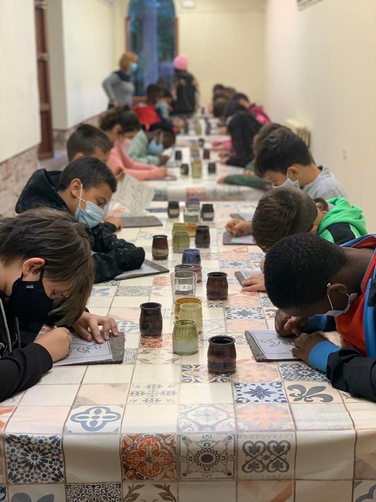 Hem creat unes rajoles amb una temàtica en concret, els oficis. Per fer-ho hem fet servir un punxó per crear la silueta del nostre dibuix, un cop hem acabat, hem fregat uns saquets amb pols de colors per sobre, de tal manera que es filtraven pels forats. Finalment hem fet servir pinzells per donar una mica de forma al dibuix i l’hem pintat, el resultat, el podreu veure ben aviat a casa!