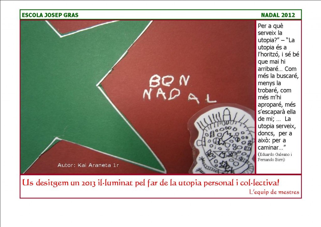 L’equip de mestres volem enviar a tothom els nostres millors desigs per l’any que comença!