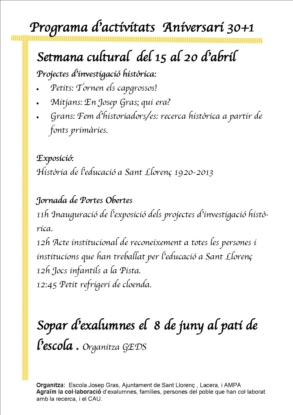 Posar l’ascensor en marxa ha estat un procés llarg i complicat. L’Ajuntament s’hi hagut de comprometre i implicar tan tècnica com econòmicament. Les coses no són tan fàcils com de vegades semblen! Finalment, però, s’ha superat una important barrera arquitectònica que tenia l’edifici del nostre centre. Mica en mica, i gràcies a la implicació de la comunitat escolar, l’edifici de la nostra escola va guanyant en accessibilitat, en estètica, en seguretat i en funcionalitat.
