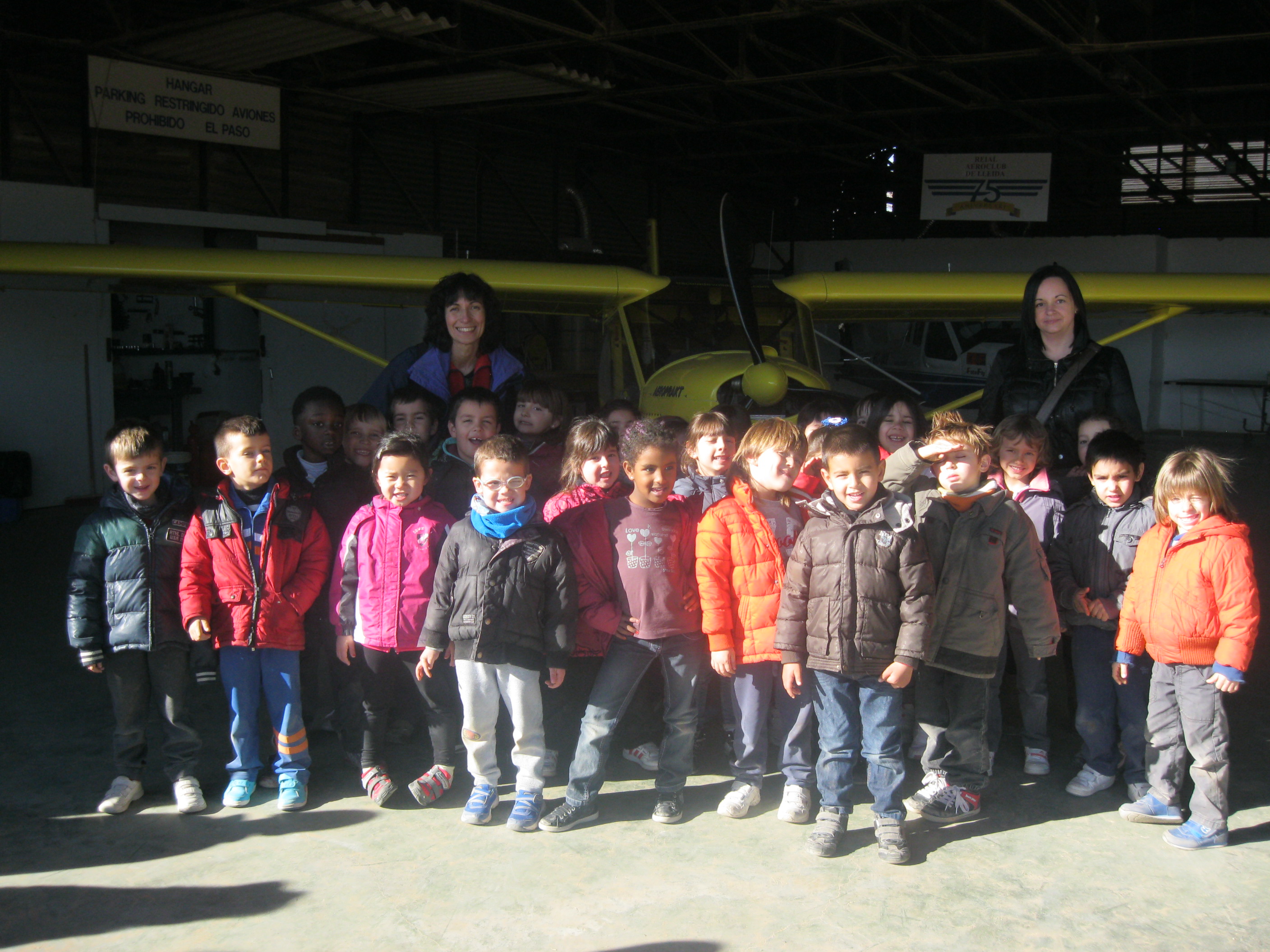 DESPRÉS EL MARC ENS VA ENSENYAR LES AVIONETES DE L’ HANGAR, ENS VA ANOMENAR LES PARTS D’ UNA AVIONETA, ENS VAM ASSEURE ALS SEIENTS DEL PILOT I EL COPILOT I VAM PODER TOCAR ELS COMANDAMENTS.