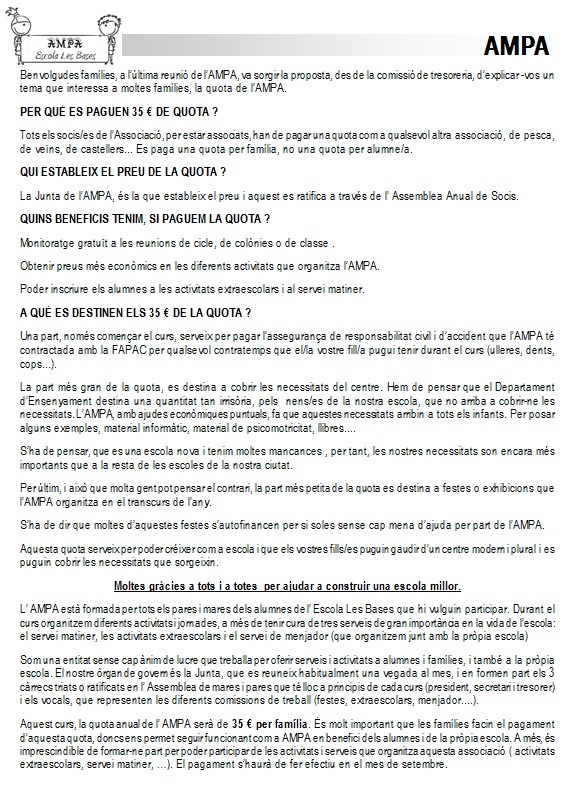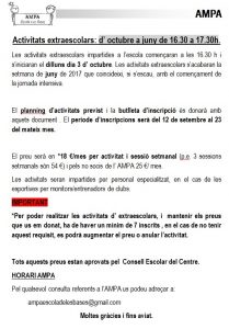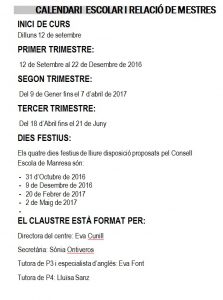 Pengem el llibret informatiu per el curs 2016/2017. Aquí trobareu informacions importants que cal tenir en compte per el curs vinent. Per a qualsevol dubte no dubteu en demanar-ho.