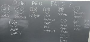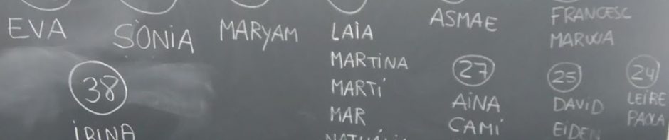 A arrel d’aquesta conversa ha sorgit l’interès per saber quin número de peu tenim. Així que aquest matí hem mirat quin número de peu fem i ho hem apuntat a la pissarra. Abans però, hem formulat hipòtesis… Molts de nosaltres hem pensat que l’Asmae és qui té el peu més gran de la classe i el David el més petit, però quan ho hem comprovat… hem vist que no és ben ben així. Mireu…