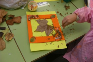 La classe dels pinotxos vam decidir fer un quadre amb elements de la tardor.