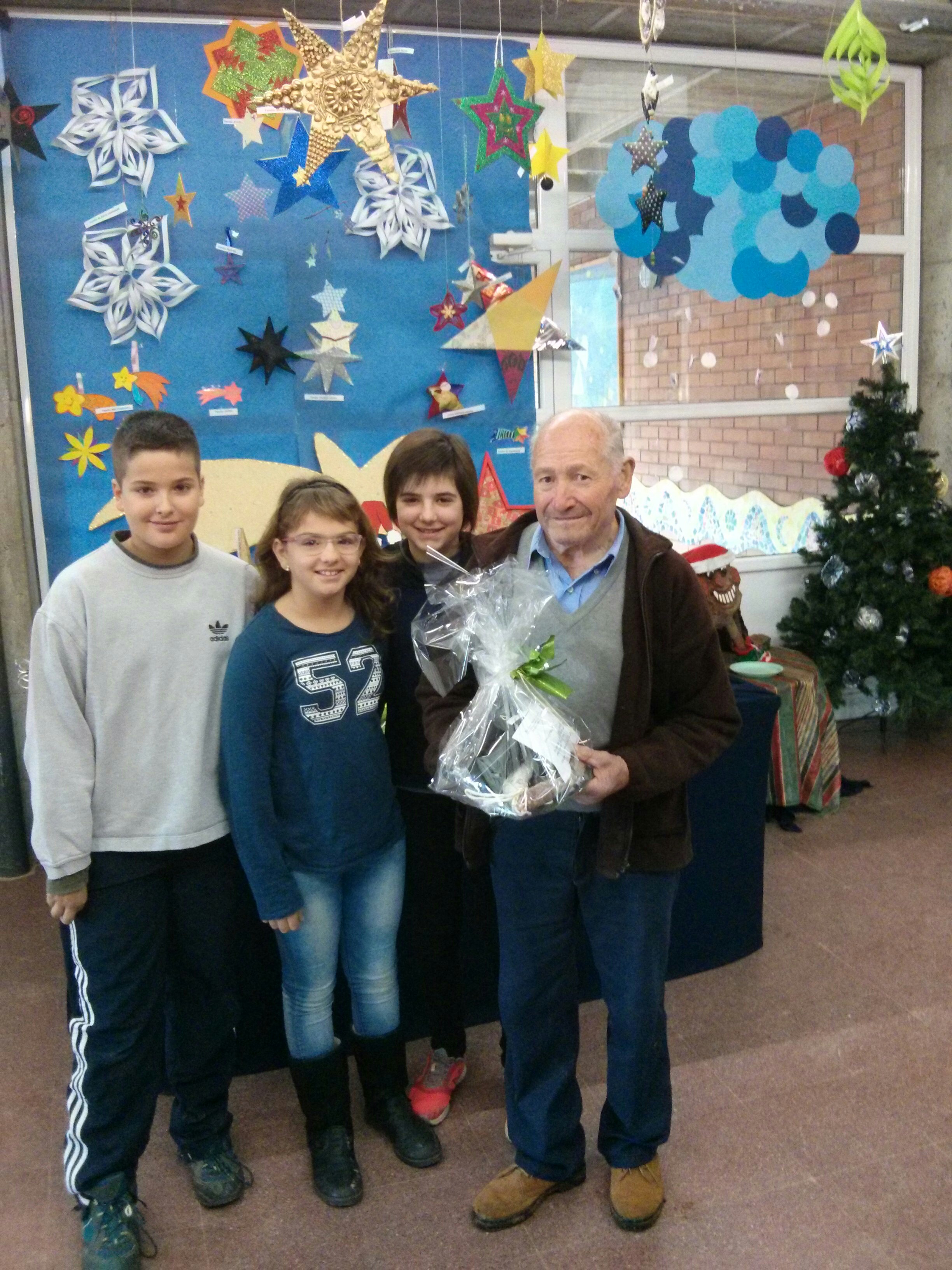 AVI MIQUEL Publicat el 11 desembre 2015 per Escola Les Escomes - ZER El Llierca Avui hem tornat a rebre la visita de l’avi Miquel a l’escola i els alumnes de sisè li han fet entrega d’una panera per agrair-li el seu ajut en el manteniment de l’hort al llarg del curs.