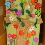 Hem aprofitat el canvi d’estació per decorar el vestíbul de l’escola amb un vistós i florit arbre primaveral i unes acolorides guirnaldes de flors.