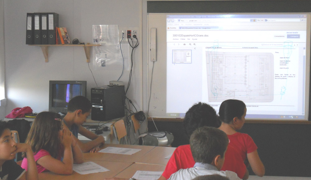 La primera activitat que hem fet, ha estat situar els espais verds de l’escola, l ‘hort, les plantes aromàtiques i medicinals i el jardí. D’entrada ha estat una mica difícil situar-nos sobre el planell, però ens en hem sortit de seguida perquè el pati es veu molt clarament.