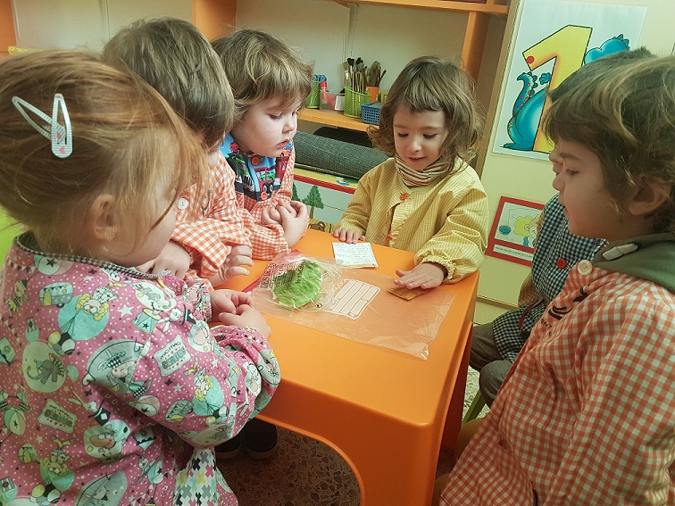Vam fer l’aigua de colors a l’espai matèria. Xafàvem, ratllàvem i tallàvem els vegetals que vam portar i els que ens van oferir allà. Després hi havíem d’afegir aigua i colar-la, tot posant-la dins d’un potet. Ens va sortir una gran varietat de colors que vam estar observant. Cada classe té dos potets per:        – trobar la manera de fer una gradació de                                                                                                                 colors                                                                                                                                                                     – observar què passa amb l’aigua de l’altre                                                                                                             pot ( fent hipòtesis prèvies ).
