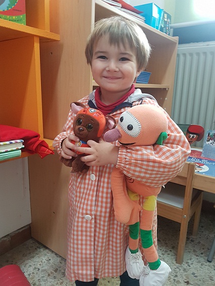 La Danae ha sigut la protagonista de la setmana i ens ha portat molts tresors: un telèfon, dos ninos (un de petit i un de gran), un carruatge amb un príncep i una princesa, el cotxe de la Minnie, una sireneta, … Com que li agraden molt els contes, ens n’ha explicat uns quants: “Els tres porquets”, “Les tres Bessones anem a la neu”, “La Caputxeta vermella”,… Hem jugat a fer endevinalles amb el conte “Els animals amics”. També ens ha portat força fotografies que ens ha anat explicant. Ens ha agradat veure’t tan emocionada i contenta!