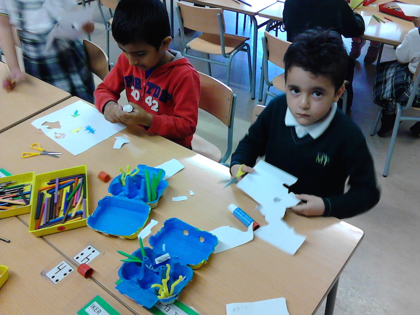 Aquest trimestre, a P5 hem treballat el projecte del nom de la classe: a P5A el projecte dels taurons, a P5B el dels cavallets de mar i a P5C el de les estrelles de mar. Hem après moltíssimes coses sobre aquests animals i, a més a més, hem creat el nostre “particular” fons marí. L’hi hem enganxat anemones, algues, peixos, taurons, cavallets de mar, estrelles, … tots elaborats amb les nostres mans!