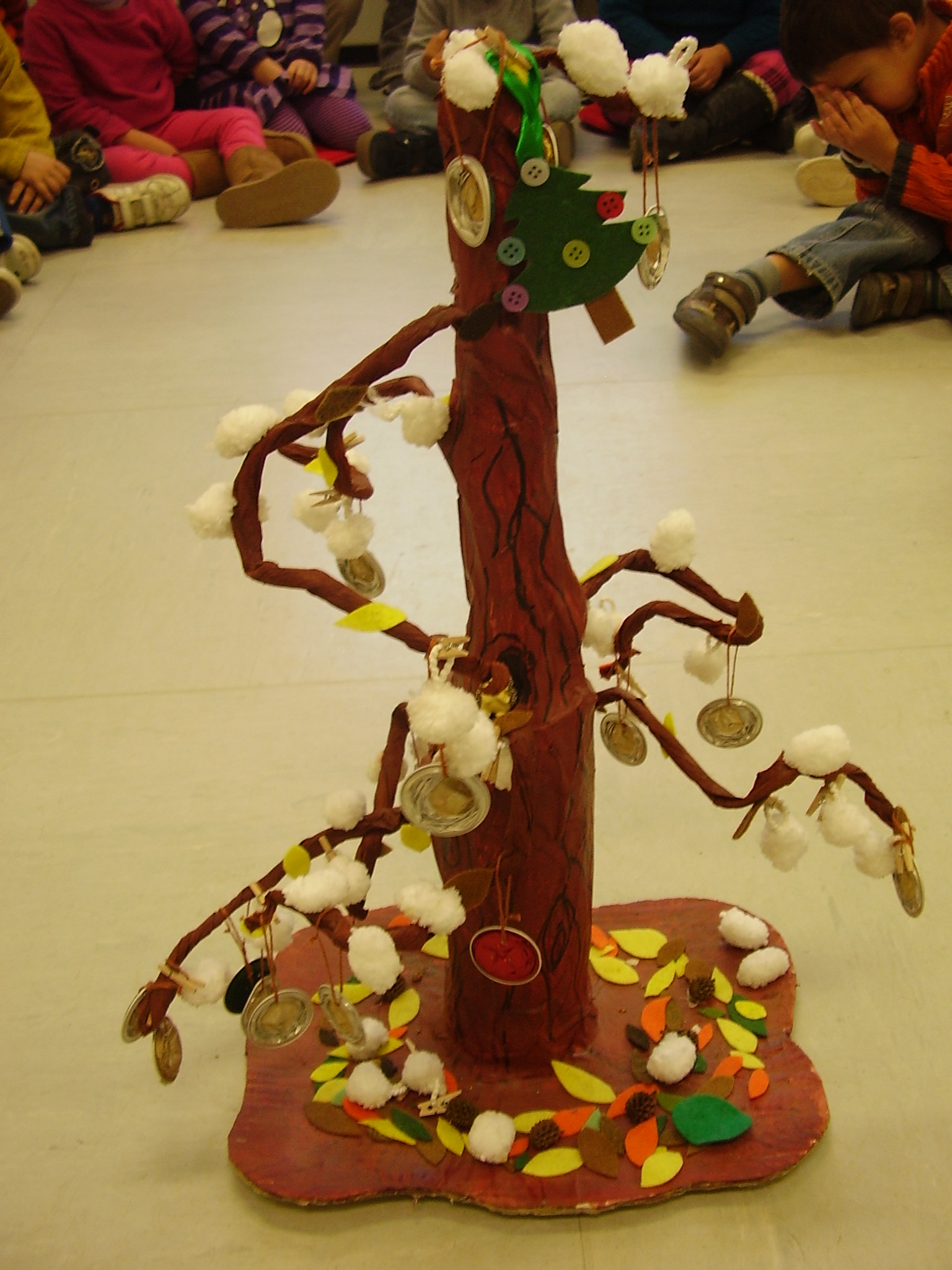 AVUI ARRIBA L’HIVERN Leave a reply PER LA TARDOR L’ORIOL FERRER I LA SEVA MARE VAN FER UN ARBRE AMB FULLES QUE QUEIEN I ENS EL VAN DONAR PER LA CLASSE. ARA AQUEST MATEIX ARBRE ELS PATUFETS/TES L’HAN CONVERTIT EN UN ARBRE D’HIVERN, AMB FLOCS DE NEU I BOLES DE COLORS. MIREU QUE BONIC…