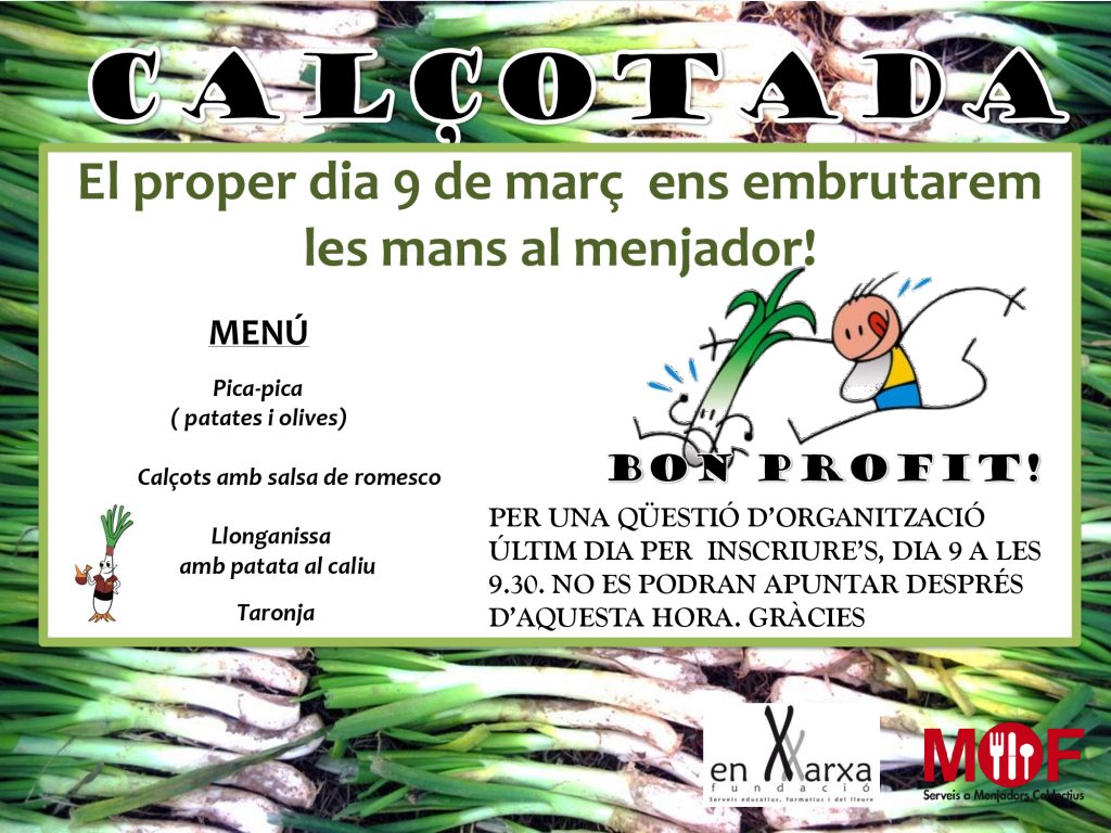 EL DIVENDRES DIA 9 DE MARÇ, EL MENJADOR DE L’ESCOLA FA UNA CALÇOTADA PER A TOTS ELS ALUMNES QUE ES QUEDIN A DINAR.