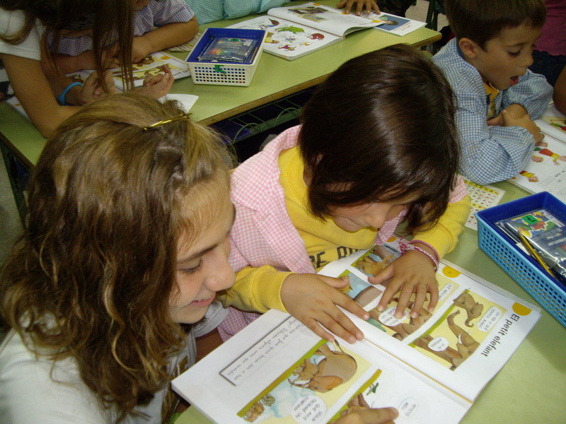 La classe de 6è cada divendres baixa a la classe de 1r a fer de padrins/es de lectura, que consisteix en ajudar a llegir als nens i nenes de 1r.