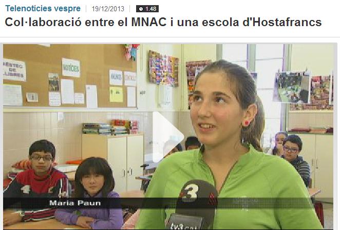 El Telenotícies vespre de TV3 presenta l’espectacle Vine al Museu! organitzat conjuntament amb el departament d’Educació del MNAC en el marc del projecte d’Escoles Tàndem.