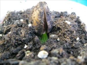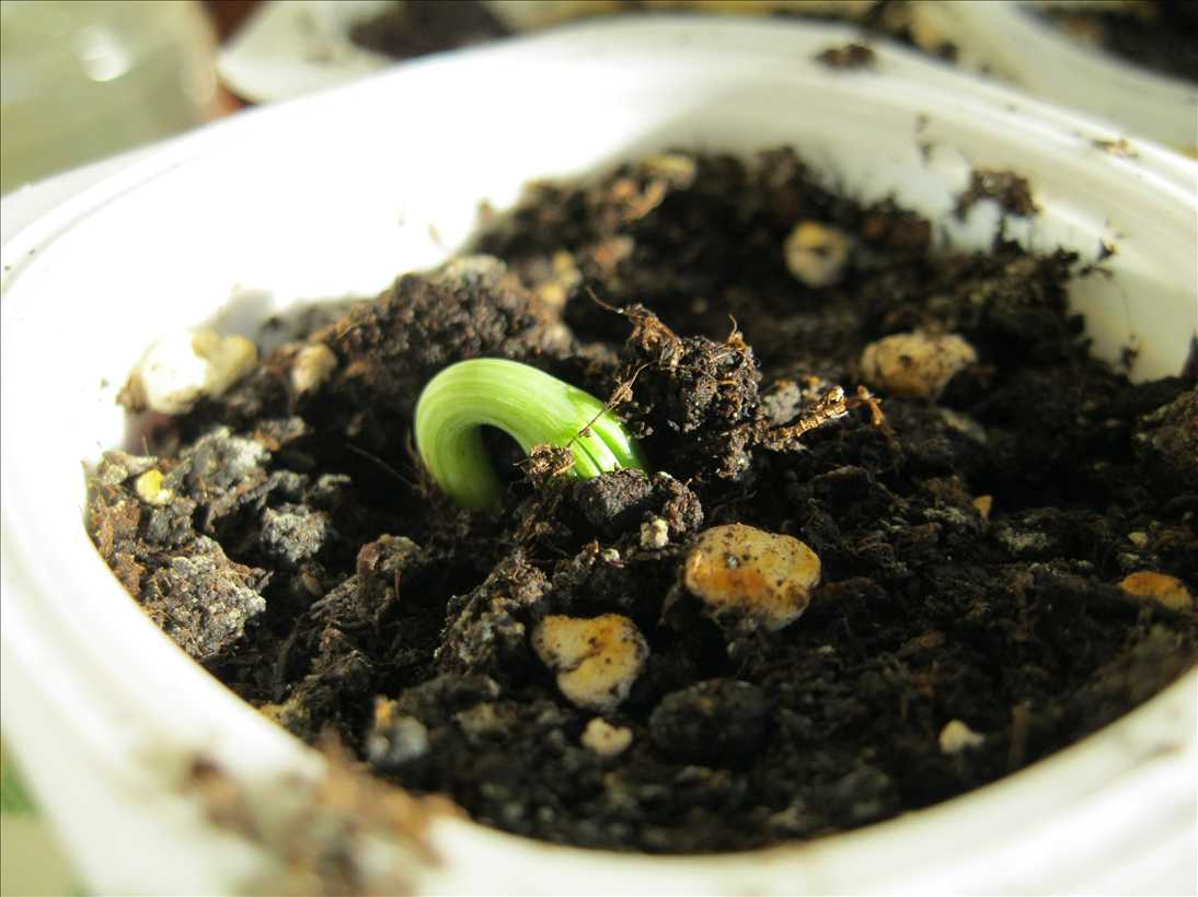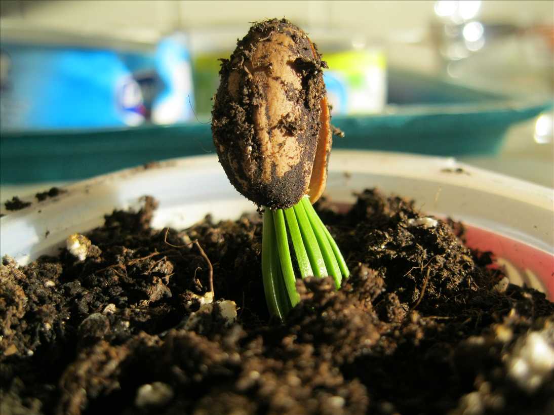 A més creix molt ràpidament. Avui Dimarts, just un dia després (11-10-2011) el nostre primer pi ha sortit una mica més de terra, i ja tenim tres o quatre nous que comencen a sortir.