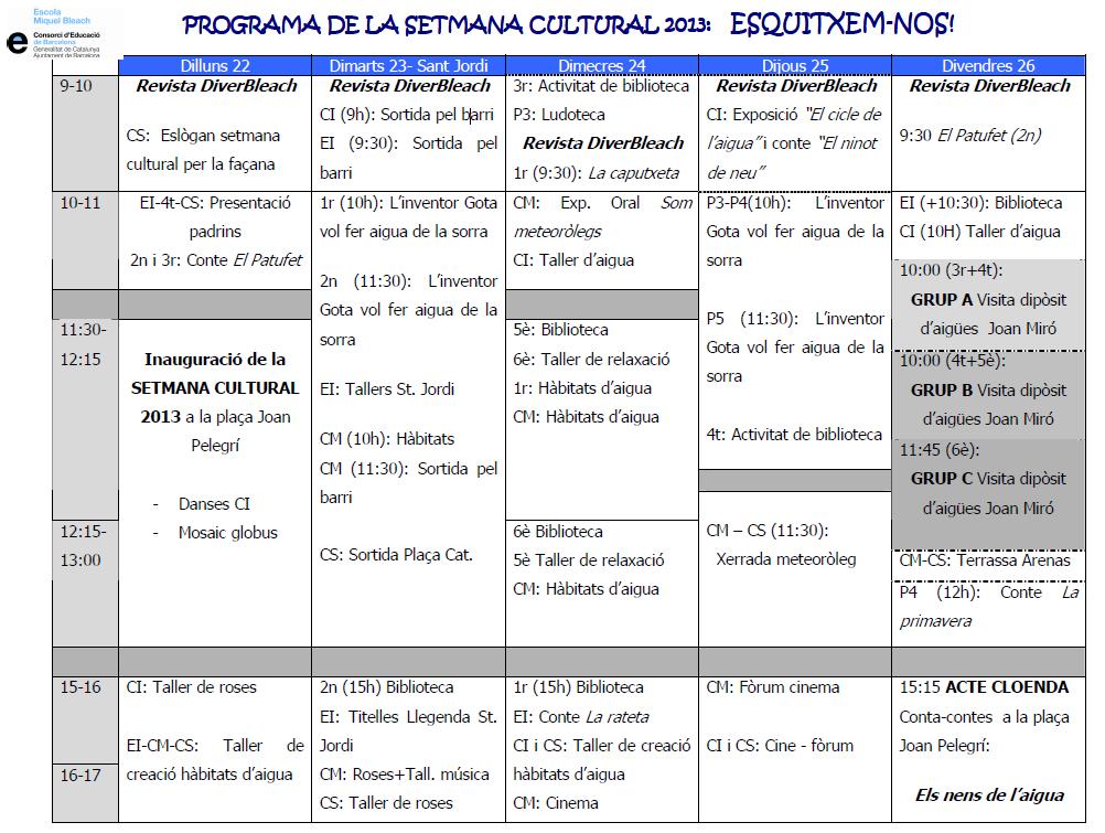 Ja tenim llesta la SETMANA CULTURAL 2013. El lema d’aquesta edició és ESQUITXEM-NOS!