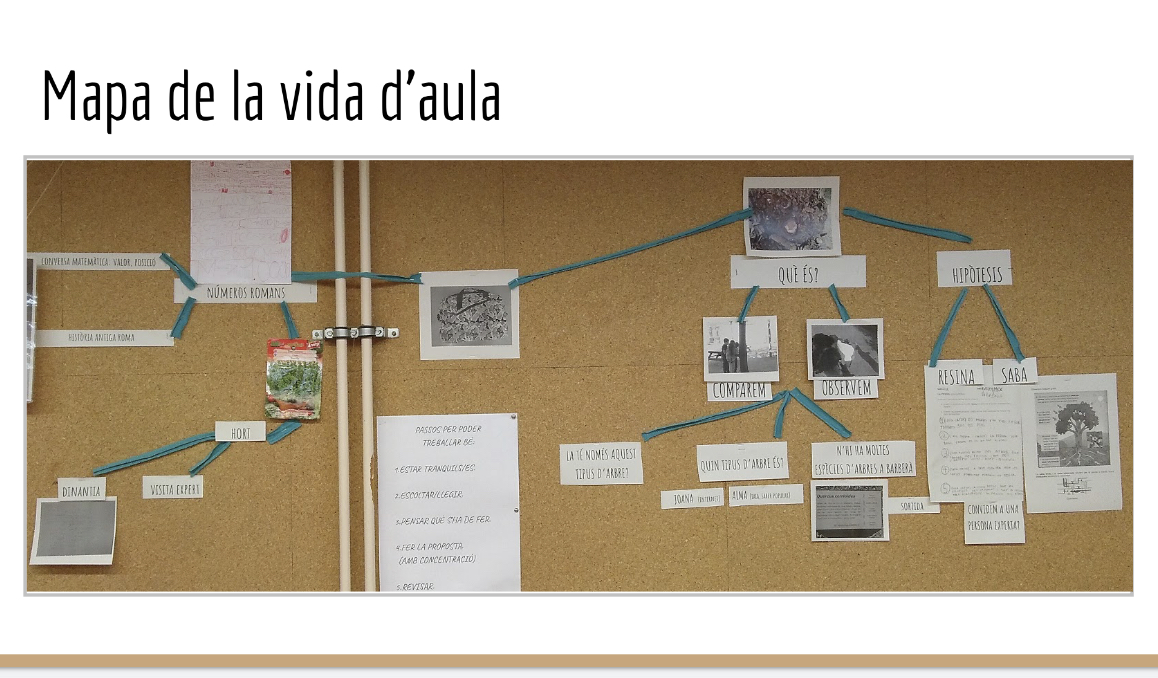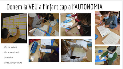 A partir del Cicle Mitjà es fa el modelatge d’aquestes eines de conscienciació de l’aprenentatge, consolidant-les al Cicle Superior. Els infants col·laboren en l’elaboració col·lectiva i individual de comunicació de processos d’aprenentatge.