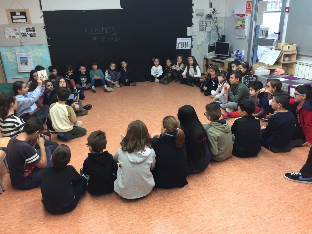 Així, en concret en els reptes d’aula, la conversa promou que les criatures es plantegin hipòtesis, expressin les idees prèvies, aprofundeixin en allò que s’està aprenent tot incorporant nous arguments que han pogut escoltar dels altres infants, els adults o altres fonts, es replantegin significats i els negociïn amb els altres… El debat, a més, permet fer conscient l’alumnat d’allò que va integrant buscant la manera d’explicar allò que sap i li interessa.
