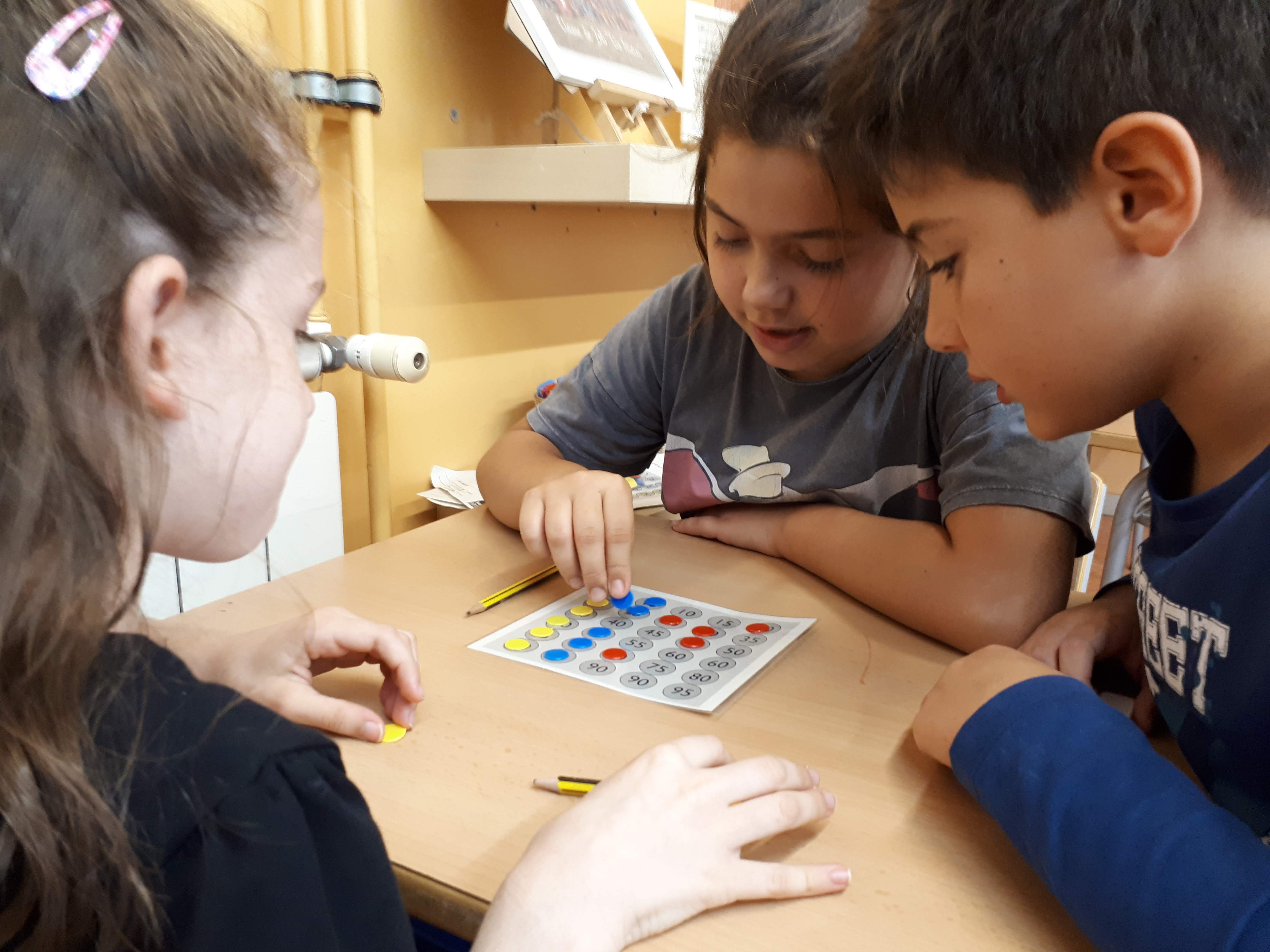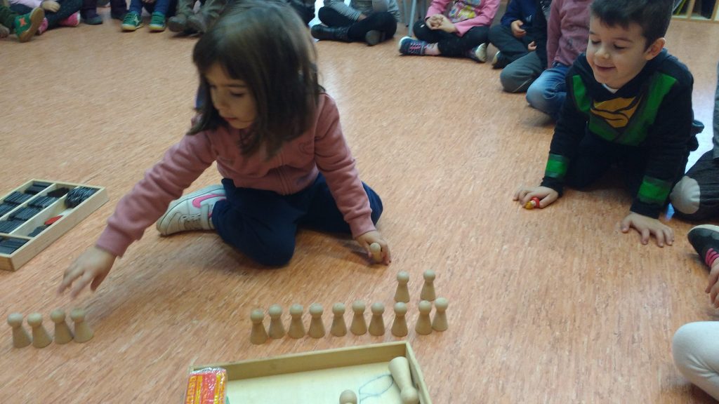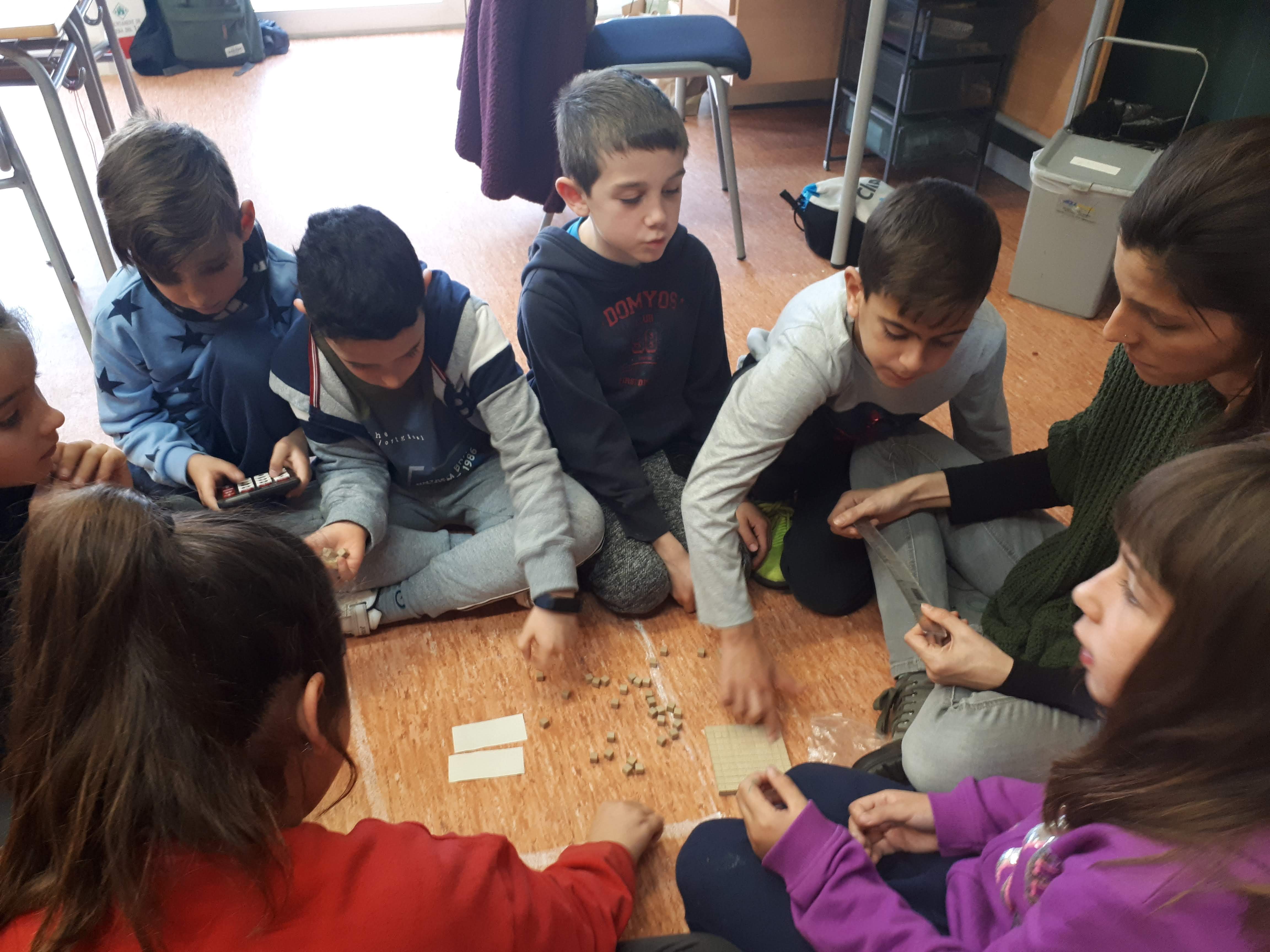 Setmanalment incorporem una sessió que anomenem matemàtiques amb les mans on creem uns espais de treball per potenciar l’aprenentatge de coneixements específics de numeració i càlcul, de lògica, de geometria o d’estadística.