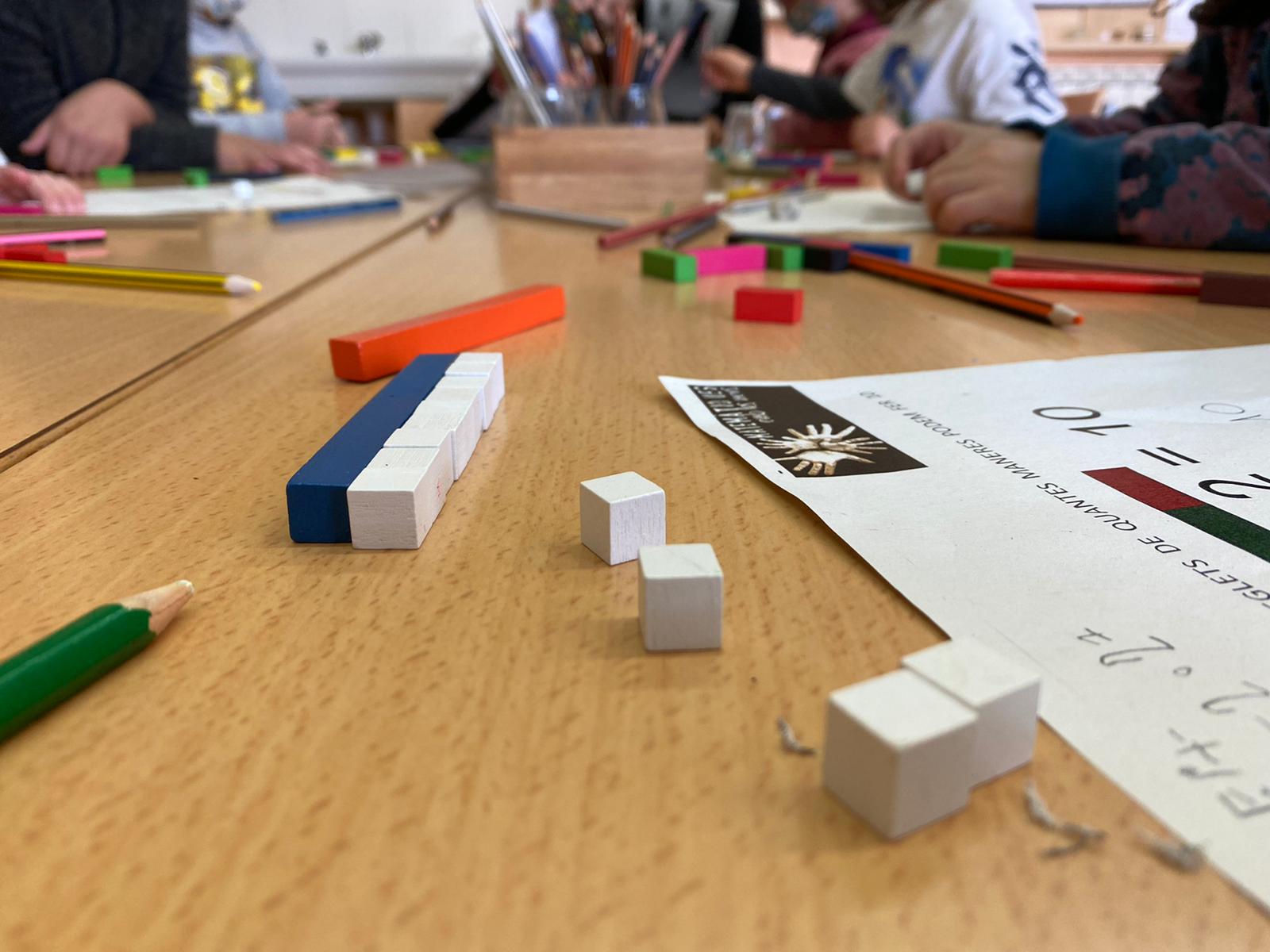 El coneixement i consciència de les estratègies de càlcul escrit i mental es desenvolupen a través de propostes guiades amb l’ús de material manipulatiu específic que faciliti la comprensió a l’infant per poder acompanyar-lo cap a l’abstracció.