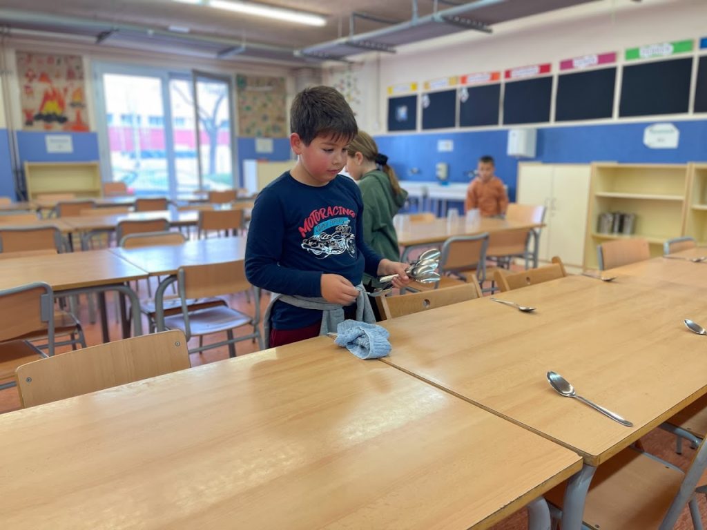Al menjador es continua vetllant pel projecte d’Escola Verda i per tant es segueixen els acords de reciclatge (orgànica i plàstic). Així com també, fomentant hàbits d’higiene, de col·laboració i sobretot d’autonomia i responsabilitat personal i social.