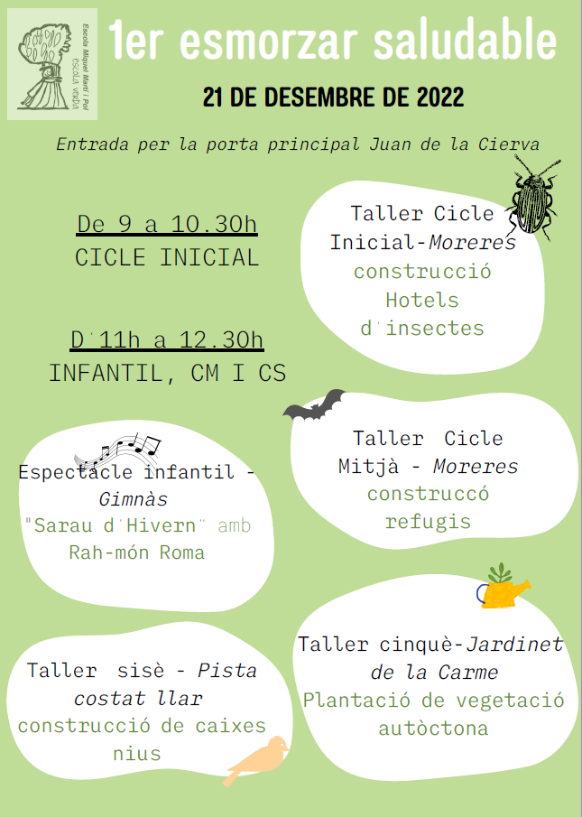 Futures famílies, us adjuntem la informació dels dies que les escoles de Barberà obriran portes per a mostrar el projecte educatiu del centre.