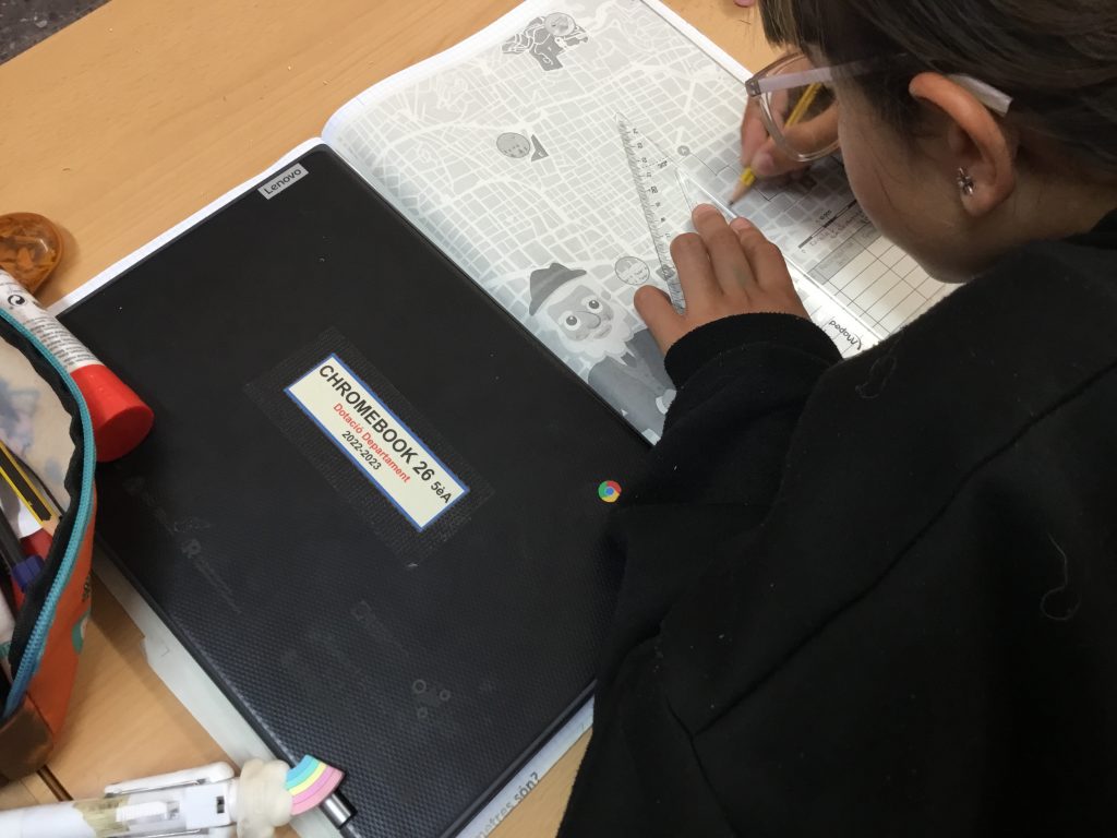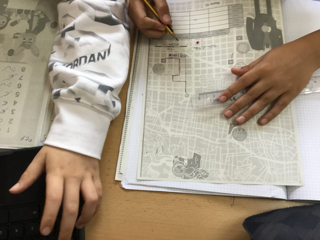 Els alumnes de 5è, dins les Aventures d’Innovamat, hem mesurat distàncies en un mapa fent servir l’escala i hem calculat quant de temps trigaríem a fer diversos desplaçaments. Ha estat una feina realitzada en parelles, on hem repassat conceptes com els quilòmetres, els centímetres i com canviar d’una mesura a una altra.