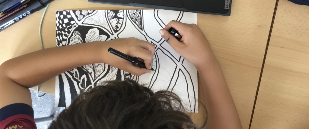 Aquesta setmana, dins l’àrea d’Educació Artística, els alumnes de 5è han explorat les possibilitats expressives de la línia i aquests han estat els resultats. També han creat doodle patterns!