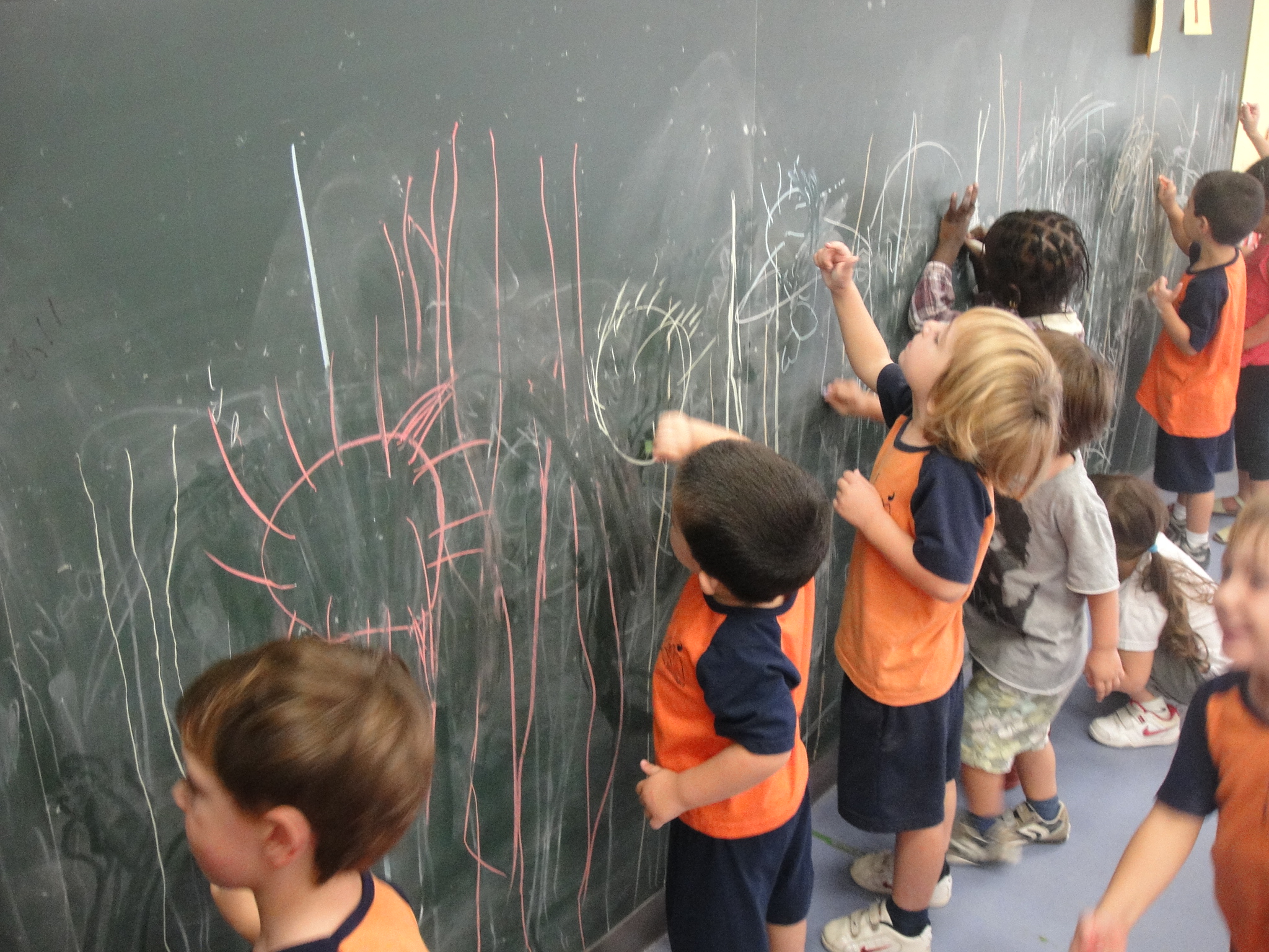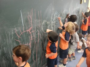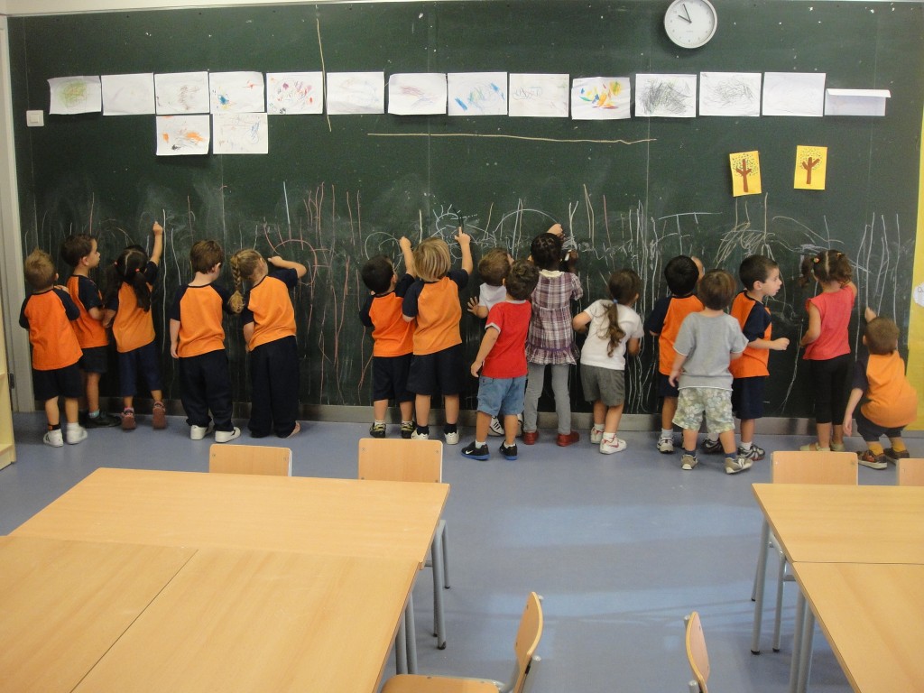 Després hem agafat els guixos i hem començat a practicar a la pissarra i a la taula. Mireu que bé que ens surten!