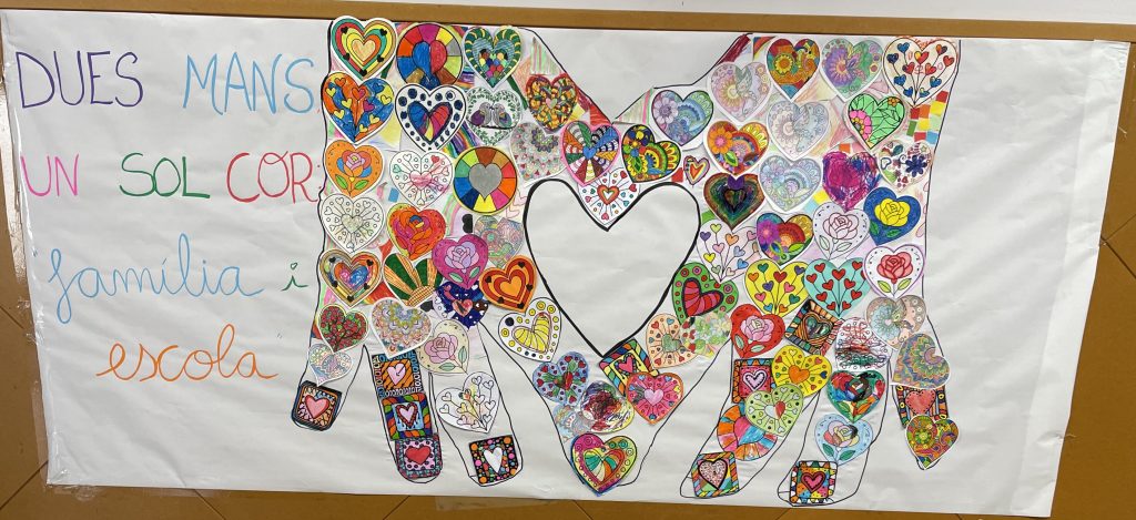 Aquest any l’alumnat i el claustre de l’escola Montalbà juntament amb les famílies hem dissenyat aquest mural tant bonic amb el lema “dues mans un sol cor: família i escola”