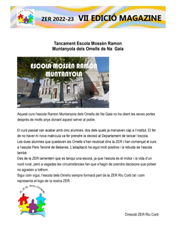 El curs 21/22 ha estat l’últim de l’escola MOSSÉN RAMON MUNTANYOLA.