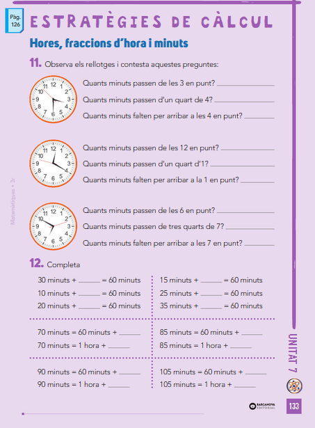 2.- Realitza l’exercici 11 i 12 de la pàgina 133 del quadernet de matemàtiques