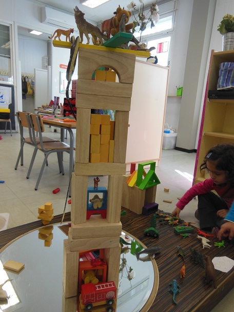 La introduïm des de P3 de forma natural. Tractem l’anglès com a llengua de comunicació en un entorn i situacions habituals d’aula. Igual que ho fem amb el català i el castellà. Durant dues tardes a P3 i P4, i dues tardes i un matí a P5, les mestres parlen tota l’estona en anglès. Si l’horari no ho permetés es realitzaria un horari equivalent a aquestes sessions. La llengua en la quotidianitat, des de l’emocionalitat, una llengua que creix mitjançant el contacte afectiu del seu tutor o tutora que es comunica en una altra llengua (anglès) de la mateixa manera com en altres moments del dia ho fa en català o en castellà.