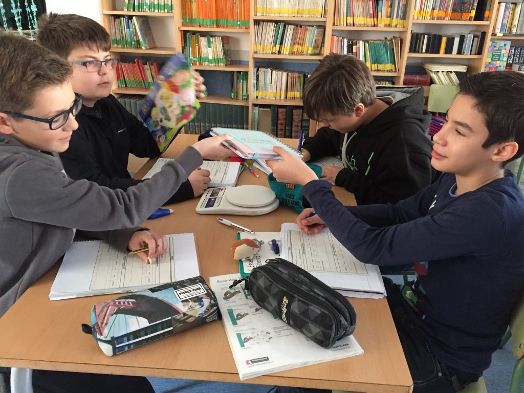 En petits grups col·laboratius, els alumnes de cinquè i sisè hem pensat, dissenyat i creat jocs de taula dins la matèria d’educació artística. El més difícil ha estat escriure les normes en anglès!
