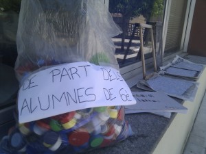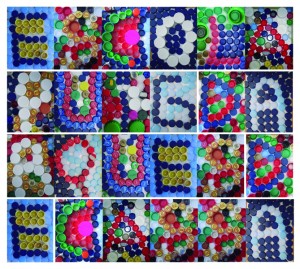 Com que hi havia un conflicte amb el tema dels taps, que sembla que se’n feia recollida per ajudar a una persona del poble, vam decidir modificar l’activitat i en lloc d’enganxar-los, fèiem la nostra creació i la fotografiàvem, per tot seguit tornar a fer-ne una altra i una altra. Al final, totes juntes semblaven veritables obres d’art! I així, en acabar l’activitat vam reunir tots els taps i els vam dur a un punt de recollida.
