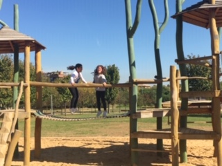 Després vam anar a dinar al parc de tobogans que es troba a Sant Cugat. Vam acabar esgotats de tant córrer i d’anar amunt i avall per les diferents construccions que hi havien.