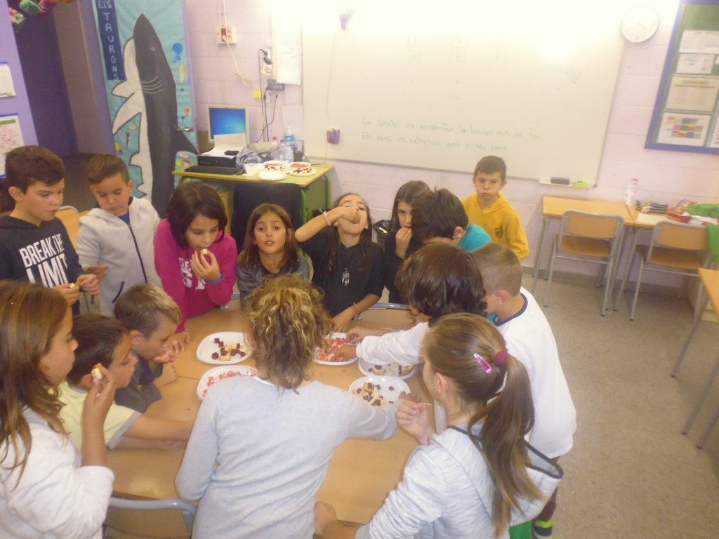 A la classe hem fet panellets d’ametlla, coco i pinyons i un cop torrats ens els hem emportat cap a casa. També hem fet un tastet de fruits de tardor i l’hem compartit amb els companys de 4t.