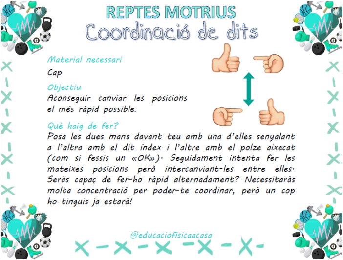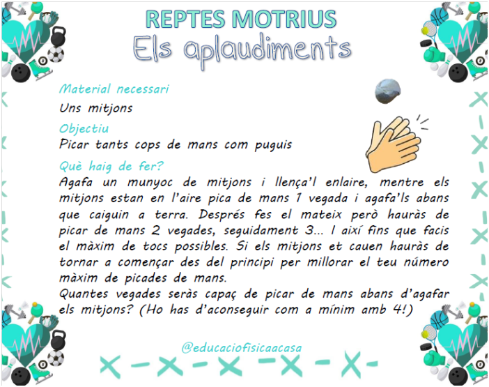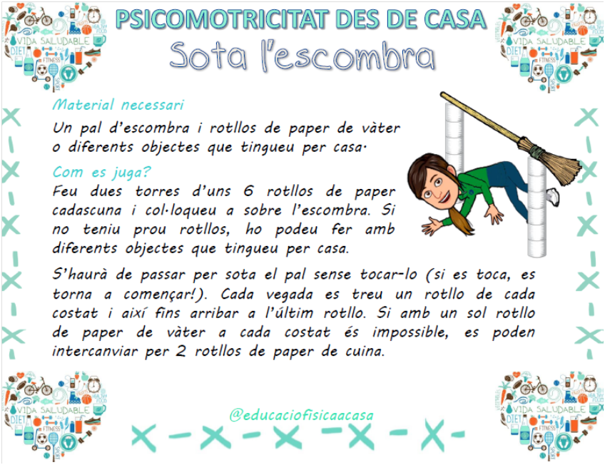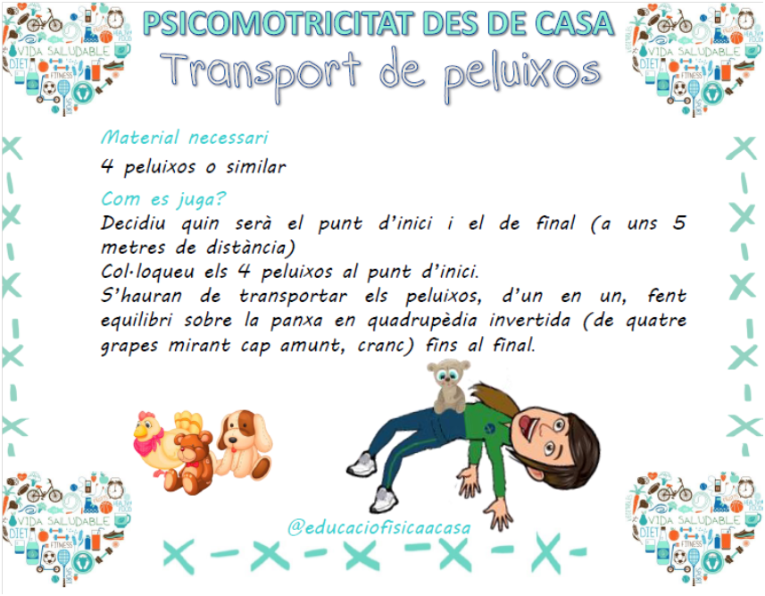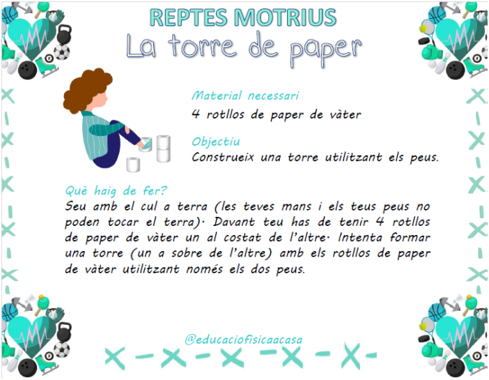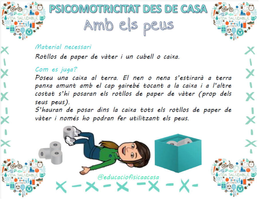 Veureu que de les activitats següents n’hi ha de molt fàcils i altres més complicades, no les hem volgut seqüenciar per nivells, les podeu adaptar segons l’habilitat de cada infant.