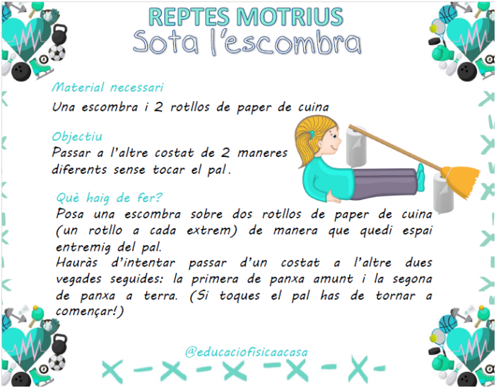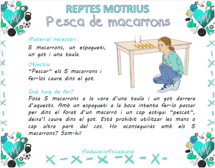Aquesta setmana el Xavi us ha preparat una activitat diària perquè mogueu el cos cada dia. També hi trobareu una activitat que us ha preparat el Marc per treballar el ritme i el compàs. A més us proposem unes experiments ben divertits. I l’Enri també us ha preparat feina.