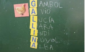 En un full o una pissarreta podem escriure paraules similars o que comencin amb la mateixa lletra, o que siguin de la mateixa llargada,…distribuïdes per tot l’espai, com ara,