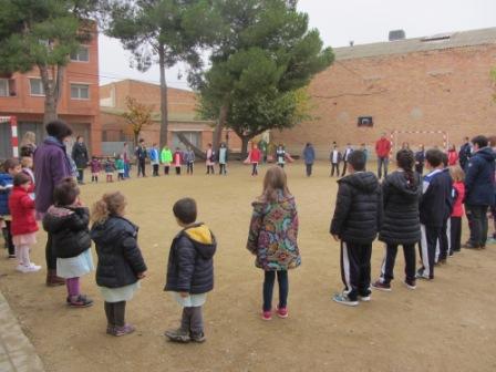 En mostra de respecte i solidaritat per les víctimes dels atemptats de París, avui 16 de novembre, a les 12 en punt del matí hem sortit al pati. Hem fet un minut de silenci.
