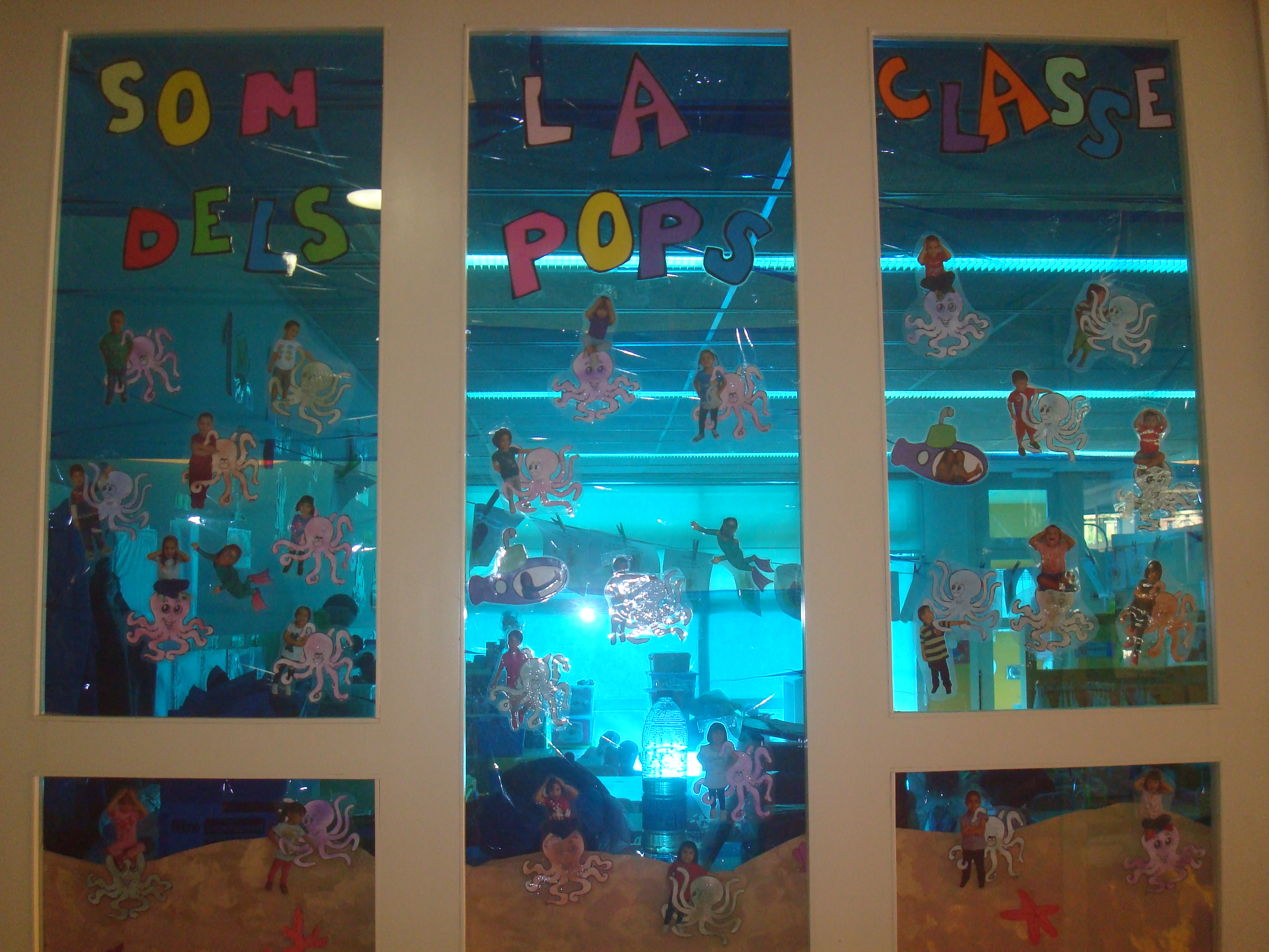 Fem un arbre molt bonic per decorar el passadís i hem aprofitat per fer la sorra del fons del mar.