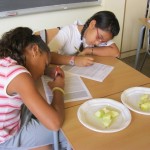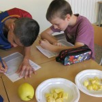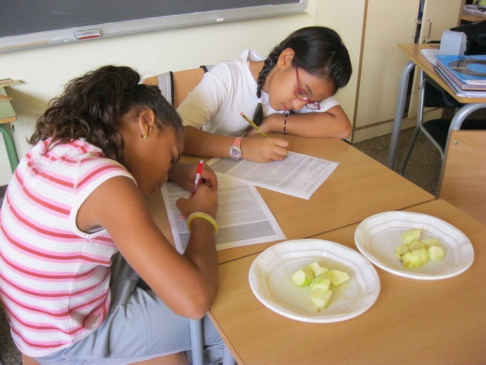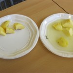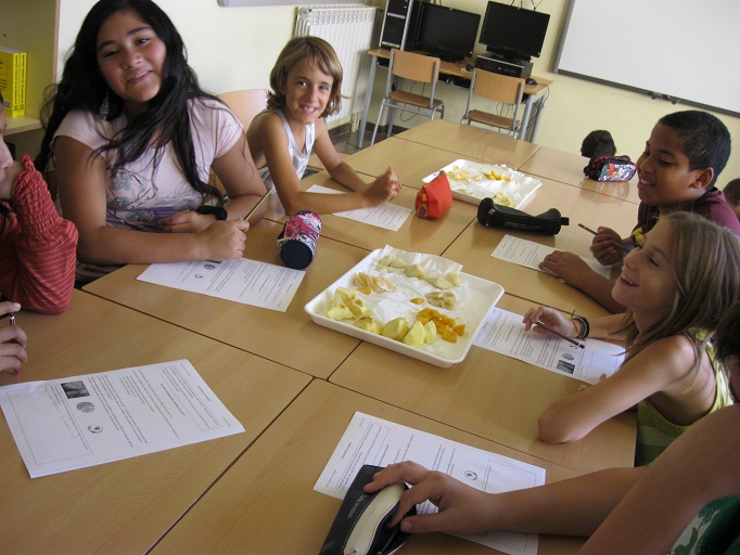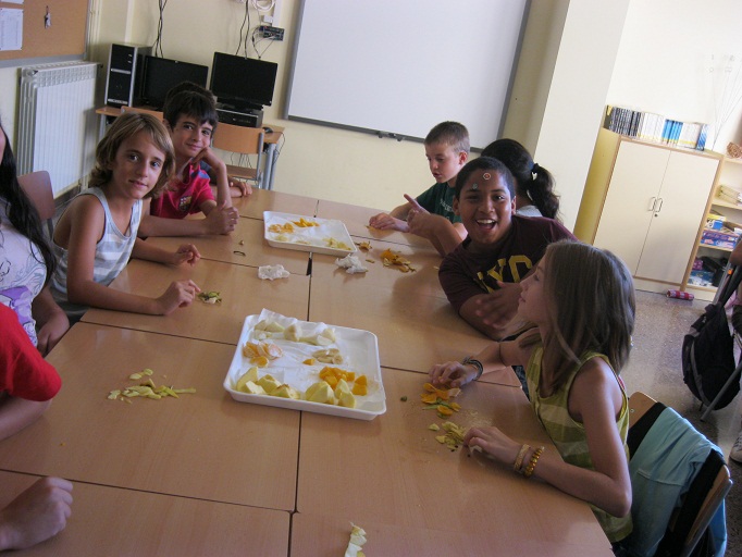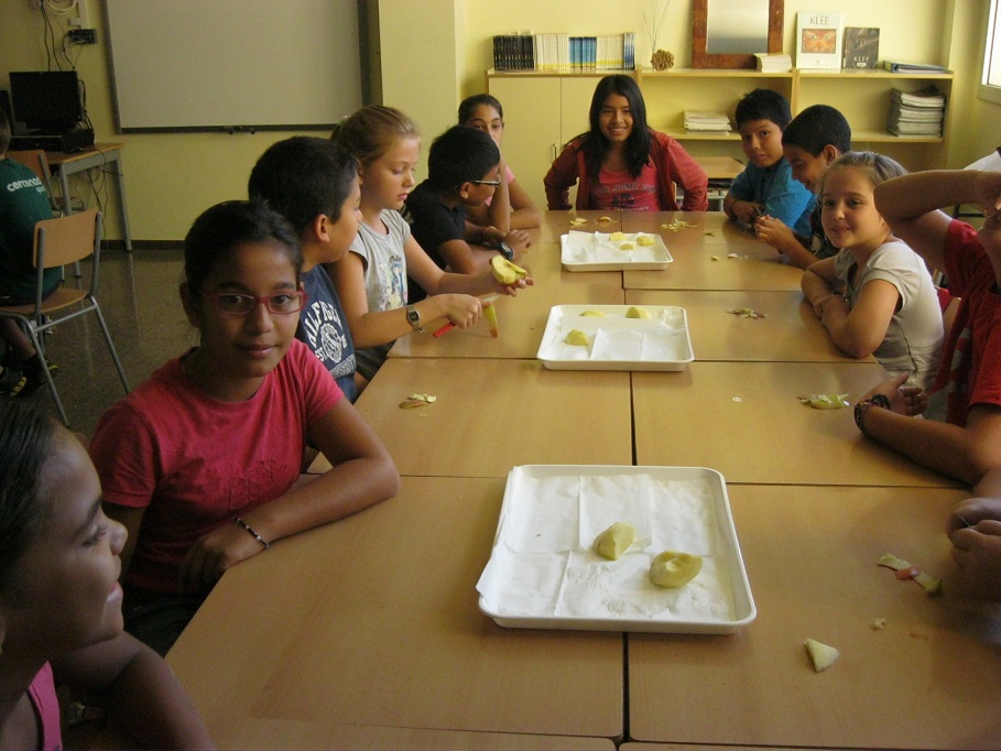 Desprès de pelar, trossejar les diferents fruites hem observat durant una estona què passava. Per grups s’ han formulat diferents qüestions i dubtes.