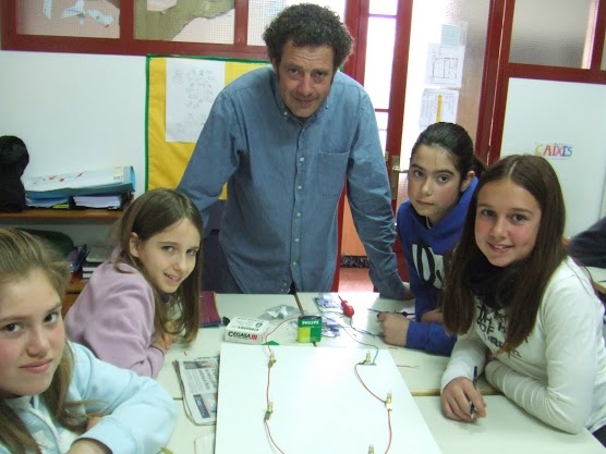 impacient per començar a fer els circuits elèctrics. Cada taula faria un circuit. Hem fet circuits molt variats, com circuits acústics, circuits elèctrics en sèrie i circuits elèctrics paral·lels. En Ramon és tot un expert! Encara que ens ha costat una mica al final tots els circuits elèctrics han quedat molt bé i molt ben decorats. Per acabar en Ramon ens ha explicat una mica com fer un bon ús de la electricitat, i com funcionaven unes plaques