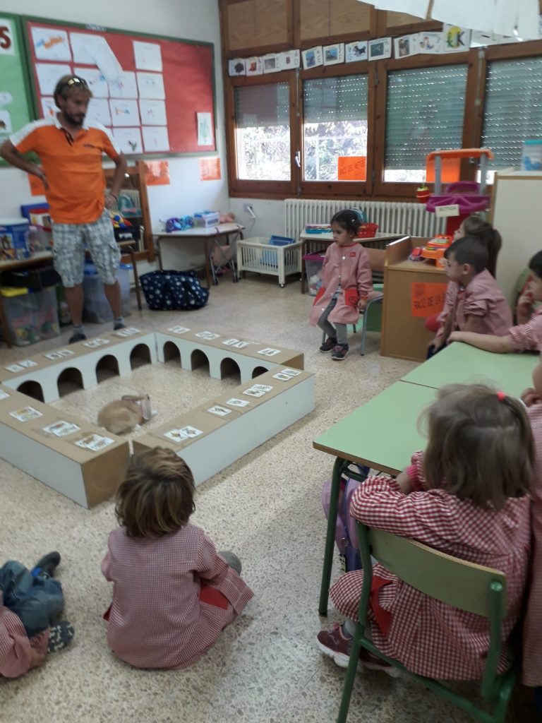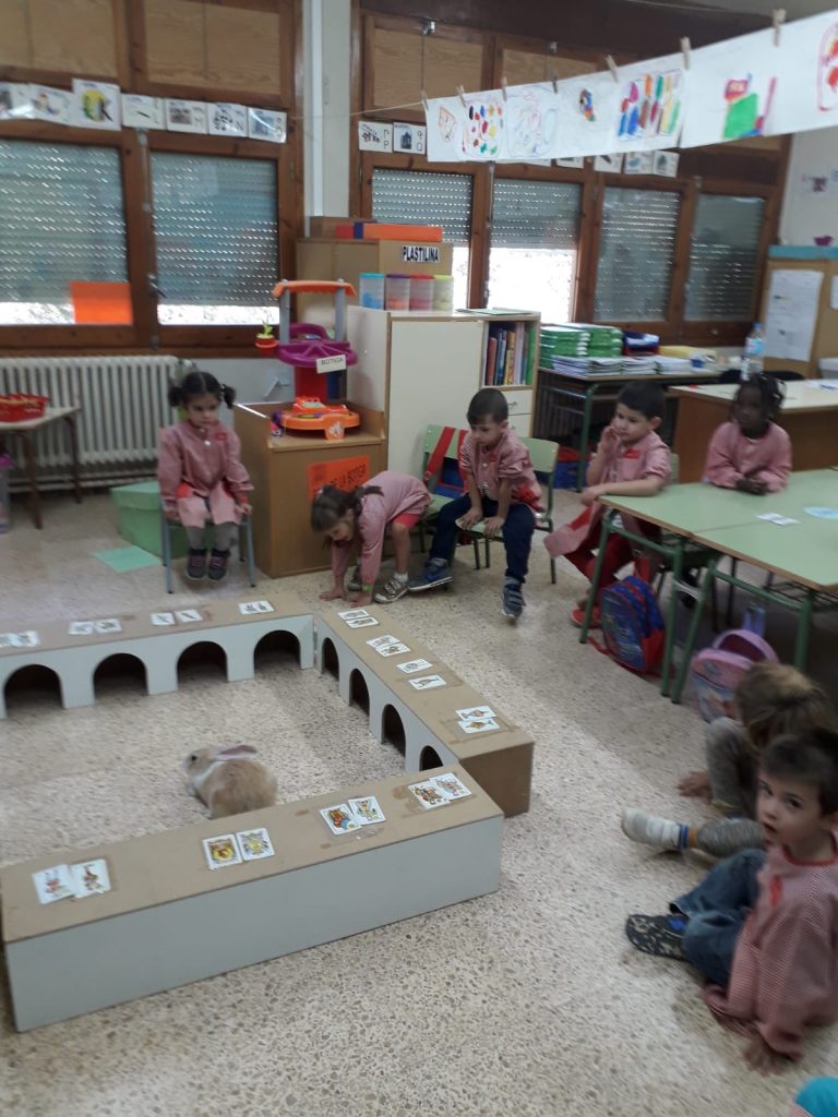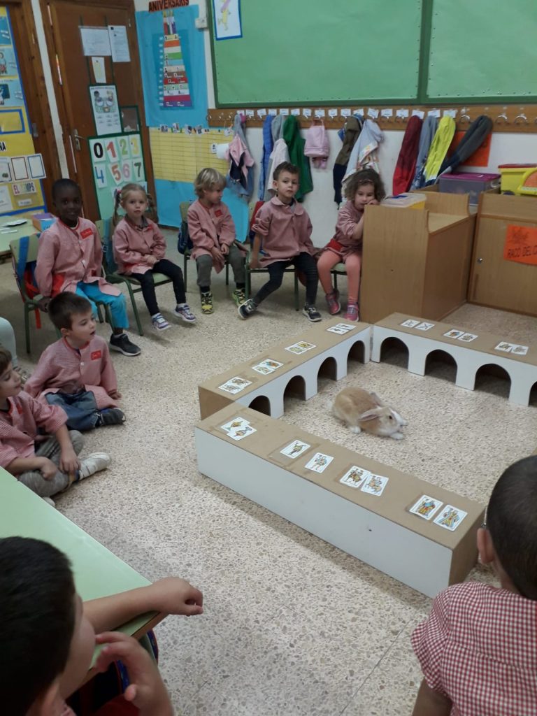 El pare de la Flor els ha portat un conill de veritat i amb ell han jugat al típic joc del conill i l’han pogut observar i tocar.